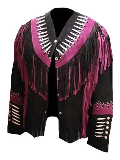 The Creative Leather introduces one of the finest designs and styles in Beaded & Bones Suede Coats. These coats are meticulously crafted with a complete focus on detailing. Its classic combination of black and magenta color makes it look more stylish and attractive. We use pure soft suede leather to make these Beads & Bones Suede Coat Jackets. The use of various kinds of hard embellishments like beads, stones, pearls, patches, and bones makes it a complete, stylish package for fashion-forward women who love to wear unique and trendy outfits on and off. We give you custom-designing options, from color to texture, design, pattern, or any other decorative element. We aim to serve our customers with the best designs of their choice. Get flat 35% off on this beautifully crafted Beads & Bones Suede Coats Womens preferred choice. Book your order now.